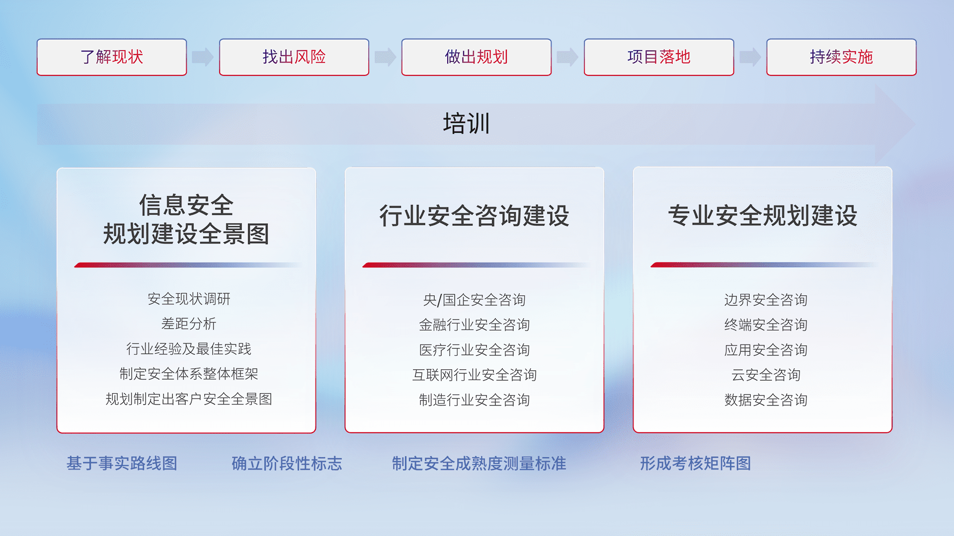 针对客户行业特性,,,将宏观的安全战略和需求,,通过专业的交付服务,,实现项目落地,,为客户提供标准规范的集成交付服务。。。。